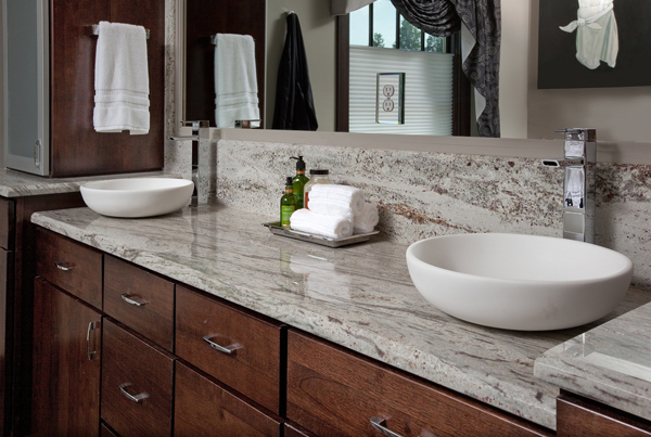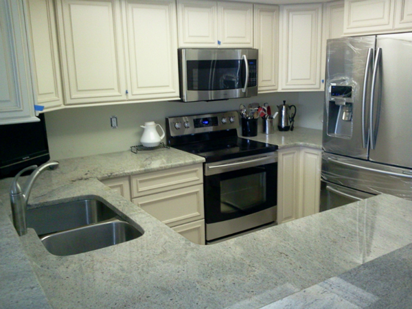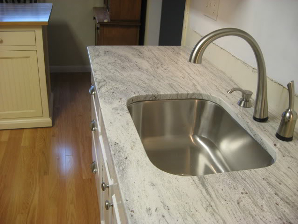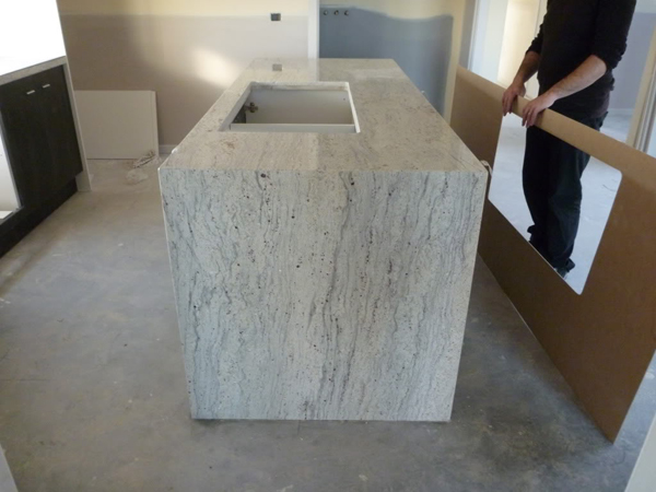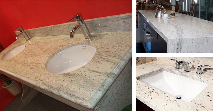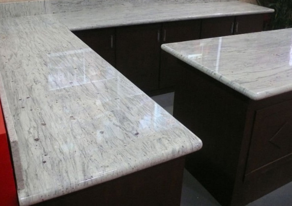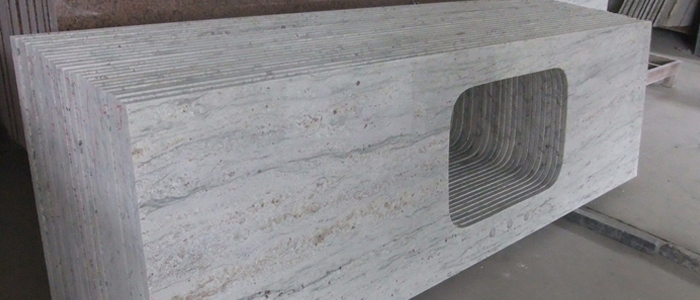 River White is a white granite with grey, blue and taupe veining from India.